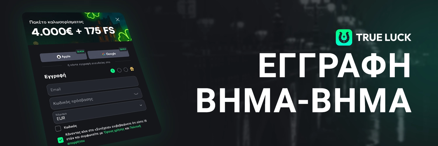 Η εγγραφή στο Trueluck διαρκεί μόνο λίγα λεπτά, θα χρειαστεί να δώσεις ένα έγκυρο email και στοιχεία ταυτοποίησης.